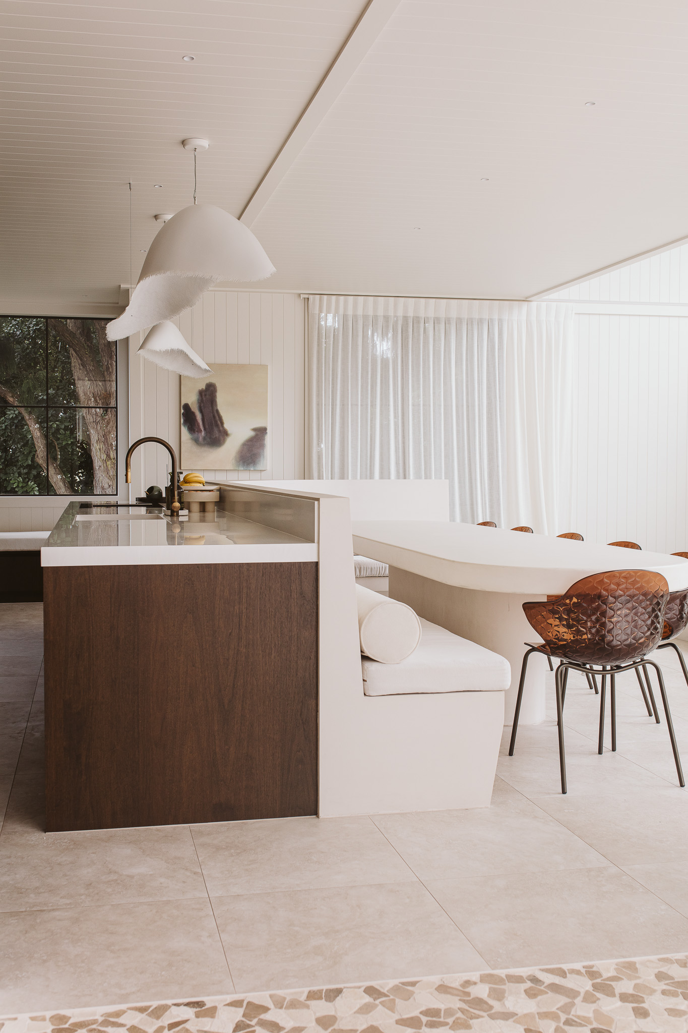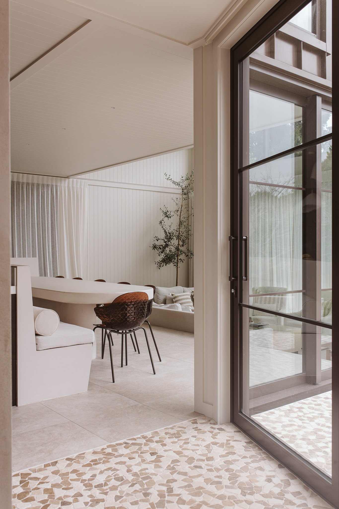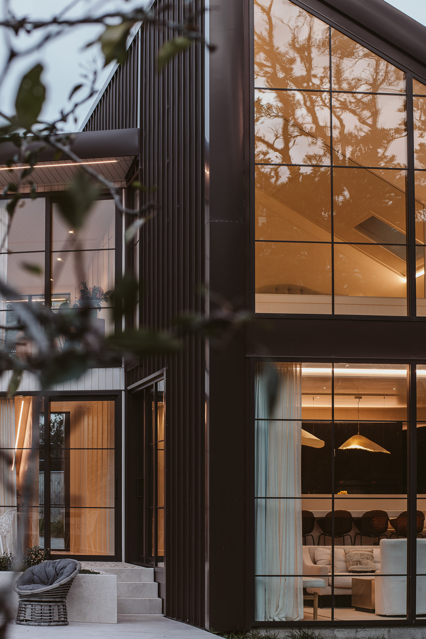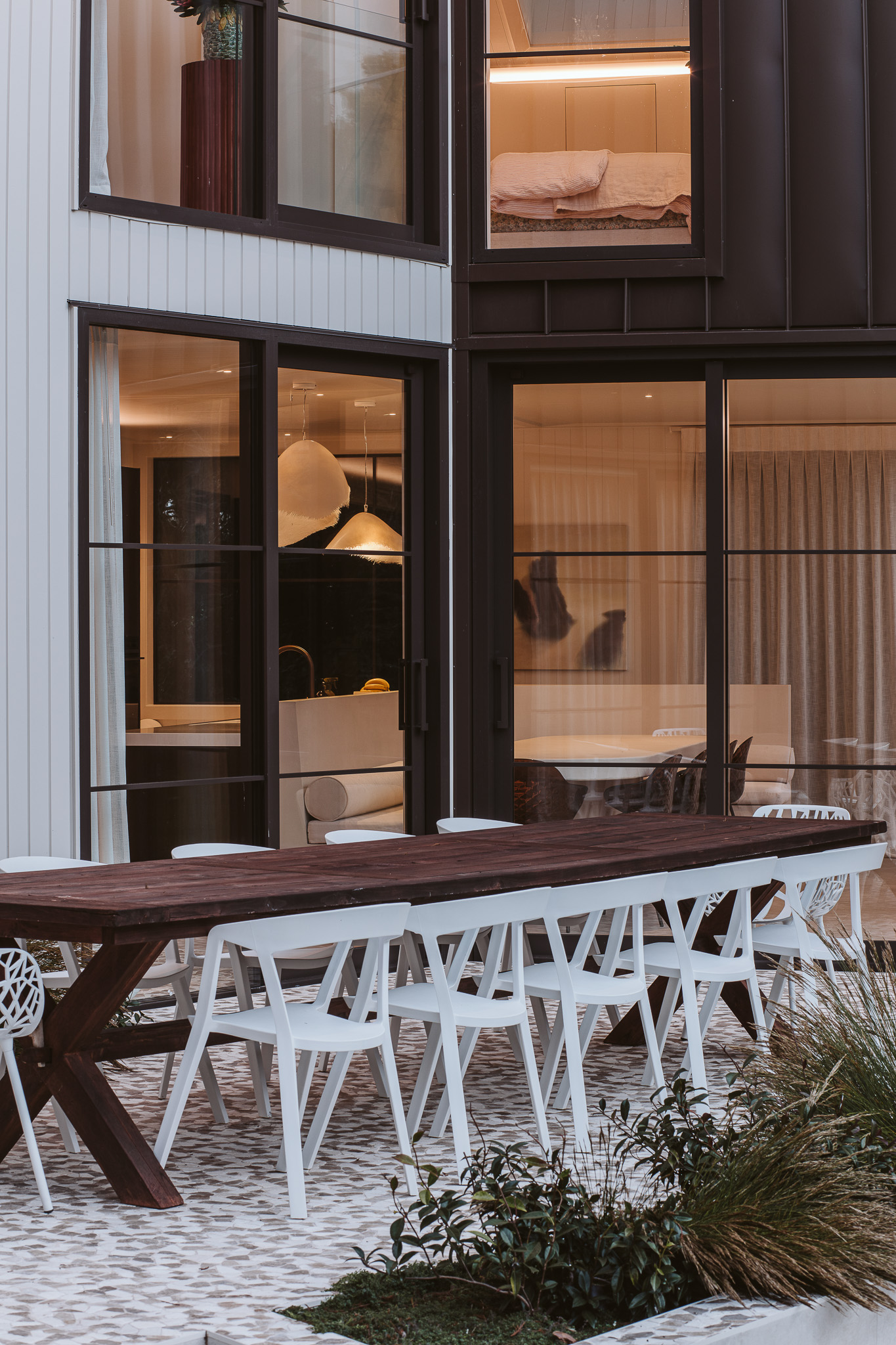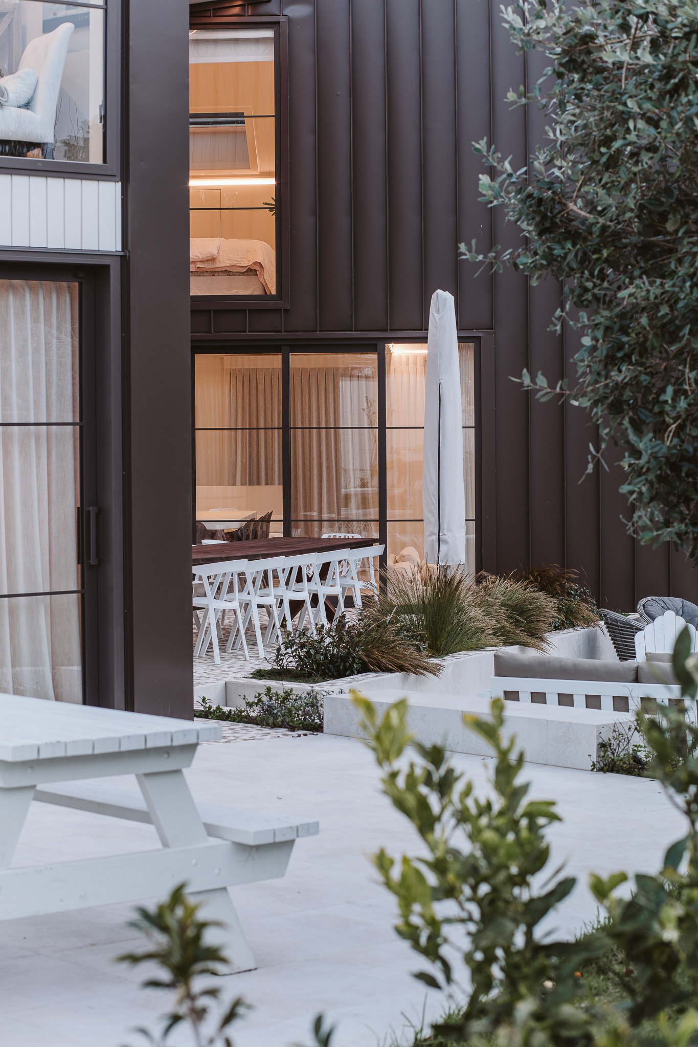 Clad in a deep-brown steel that suits the semi-rural surrounds, and shiplap weatherboards, the exterior language also translates to the indoors to blur what is in and what is out.